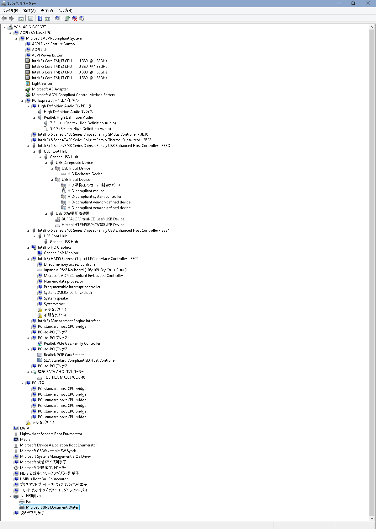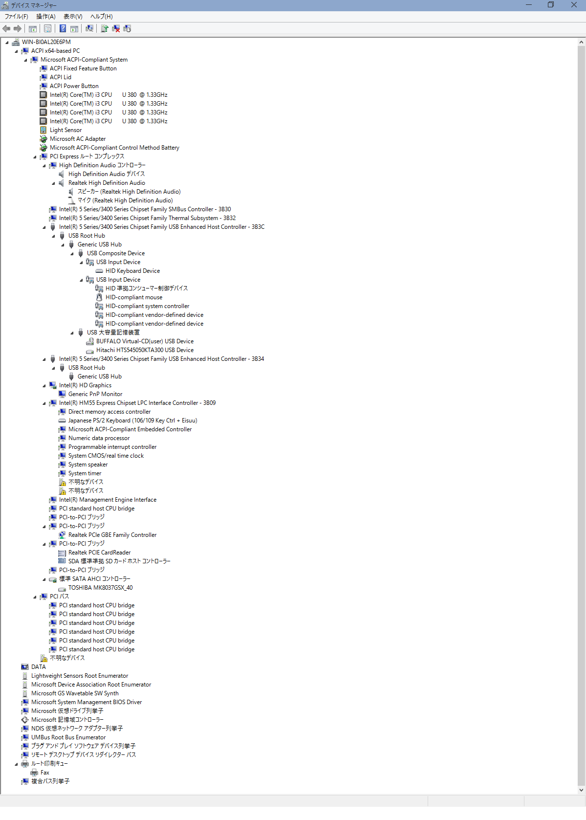 デバイスマネージャの画面コピー↓