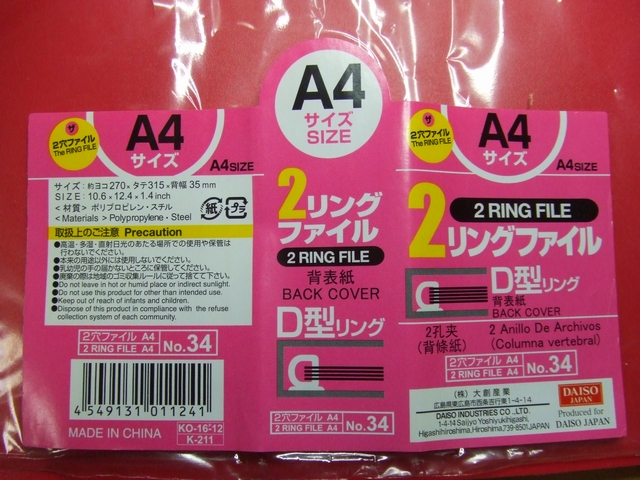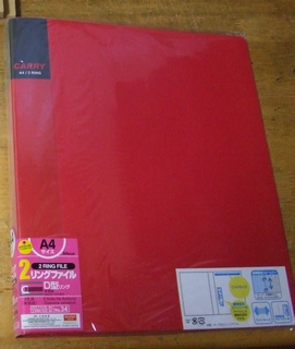 ごくありふれたA4サイズのリングファイル。材質はPP。