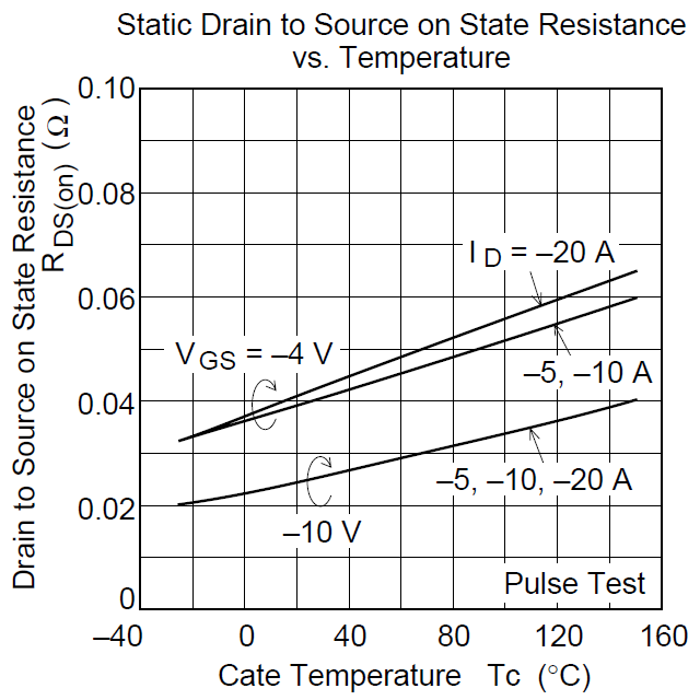 ここで VGS=-6[V] であり、ゲート温度を約60℃と仮定すると、ドレイン−ソース間抵抗RDSはデータシートから